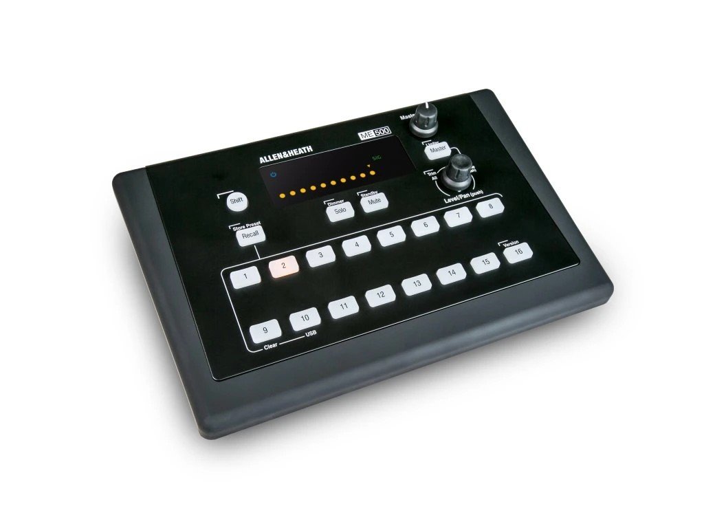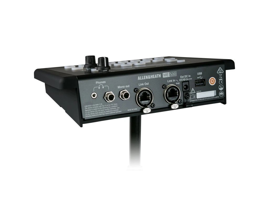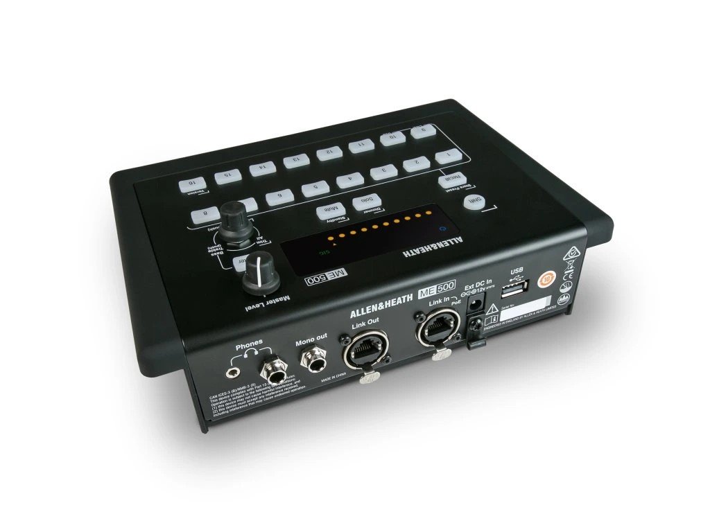 Allen & Heath ME-500 je praktické a výkonné osobné odposluchové rozhranie, ktoré umožňuje hudobníkom nezávisle si nastaviť vlastný monitorovací mix v rámci digitálneho systému Allen & Heath (napr. dLive, Avantis, SQ). Vďaka prehľadnému OLED displeju a jednoduchému ovládaniu šetrí čas zvukárovi a zvyšuje komfort pre hudobníkov na pódiu.