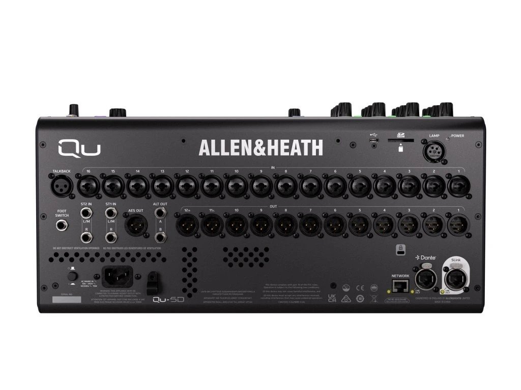 Varianta Qu-5D navyše obsahuje vstavané Dante rozhranie (16×16 @ 48/96kHz) pre priamu integráciu do Dante sietí bez potreby dodatočných kariet.
