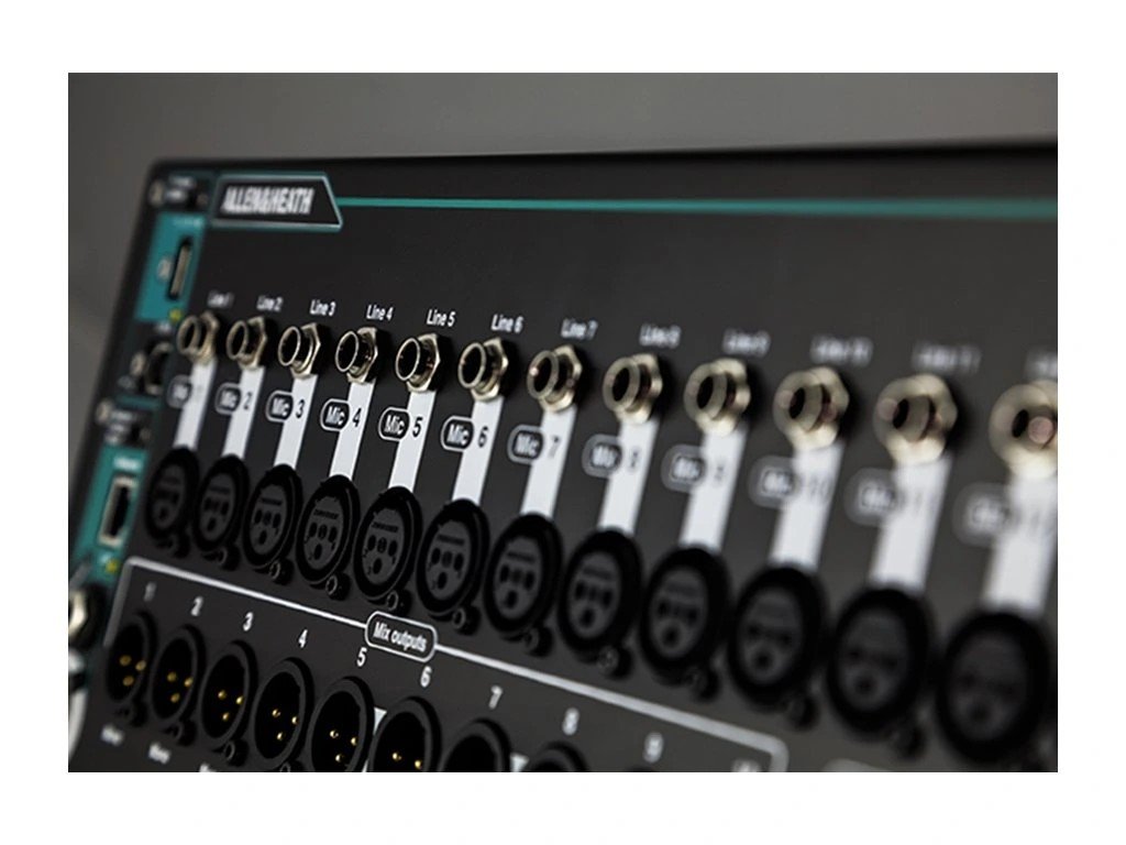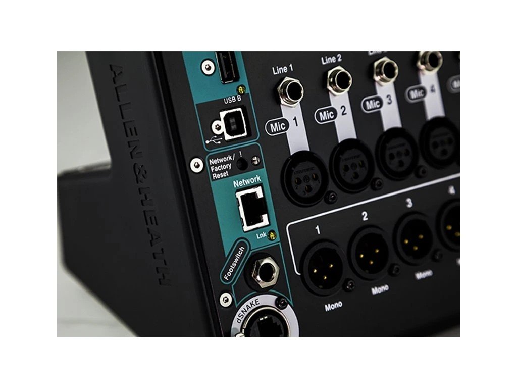 Port dSNAKE – možnosť pripojenia audio rackov (AR2412, AR84, AB168) až na 32 vstupov a 24 výstupov
