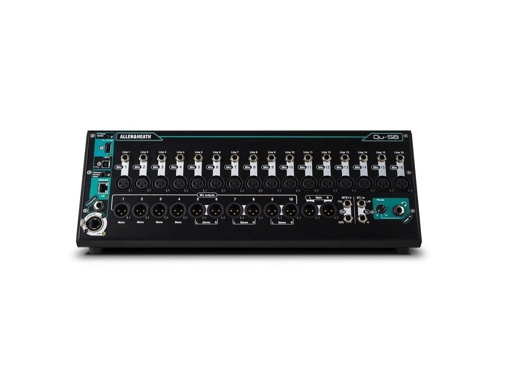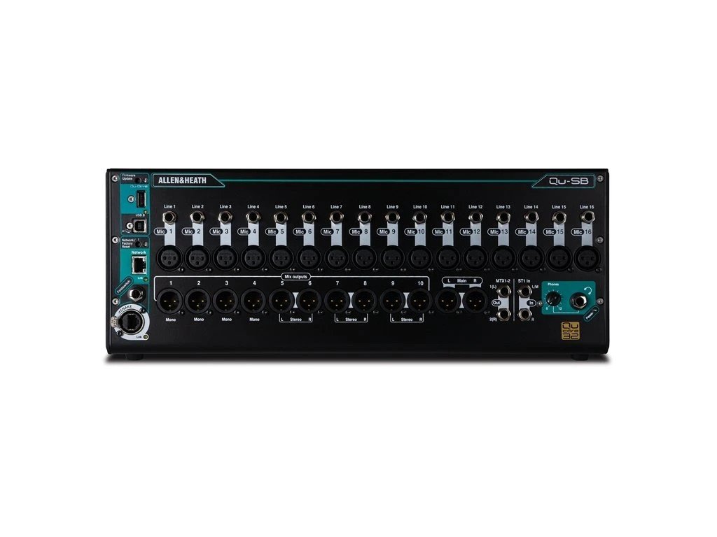 Allen & Heath Qu-SB je výkonný digitálny mixážny systém v ultra kompaktnom formáte, navrhnutý ako stagebox bez fyzických ovládacích prvkov, ktorý sa plne ovláda bezdrôtovo cez aplikáciu Qu-Pad pre iPad. Napriek svojim rozmerom ponúka rovnaký výkon ako väčšie modely série Qu a predstavuje ideálne riešenie pre kapely na cestách, kluby, školy, konferenčné miestnosti či mobilné štúdiá, kde sa šetrí priestor, no vyžaduje sa profesionálny zvuk.