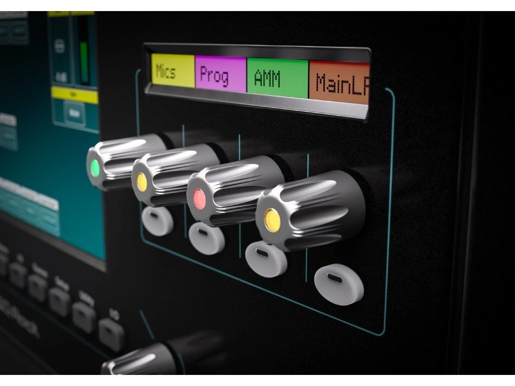 48 vstupných kanálov + 36 mix busov (12 aux/group + 3 stereo matice + LR)