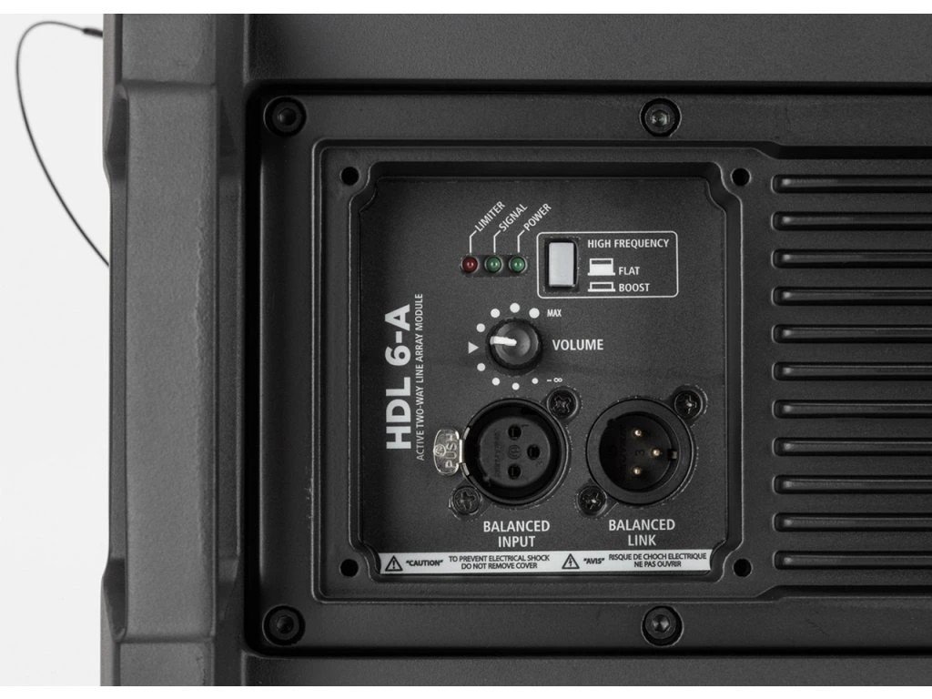 HDL 6-A je ideálním řešením pro aplikace, které vyžadují vlastnosti line array s rychlou a snadnou instalací. Tento modul je vybaven špičkovými reproduktory RCF – o pevný basový základ se starají dva neodymové 6,5" středobasy s 2" cívkou, zatímco čistý a detailní přednes vokálů s vysokou dynamikou zajišťuje 1" neodymový tlakový reproduktor s 1,7" cívkou, umístěný na precizním zvukovodu s vyzařovacím úhlem 100° x 10°.